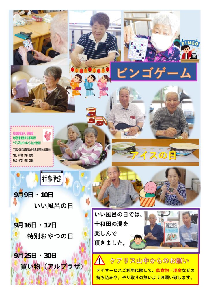 地域密着型通所介護 ケアリス山中 9月のお便り