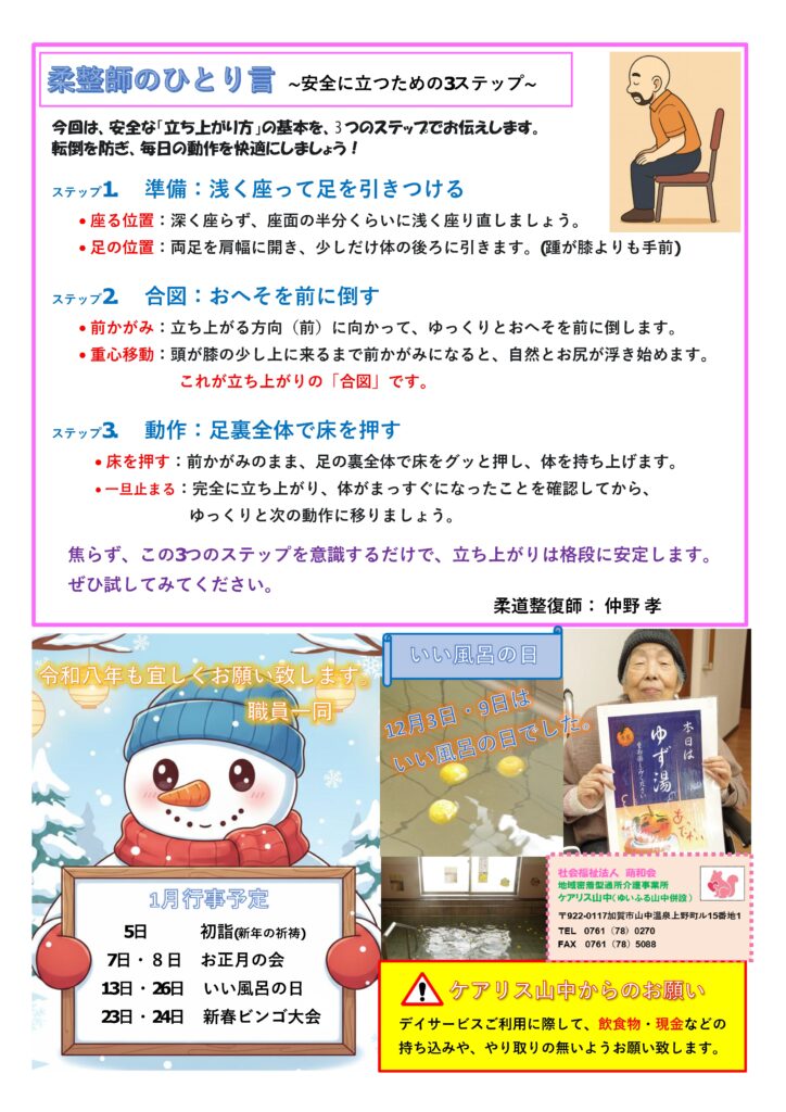 地域密着型通所介護 ケアリス山中 1月のお便り