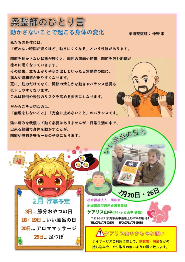 地域密着型通所介護 ケアリス山中 2月のお便り